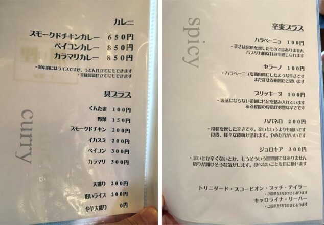 カレーのメニューは3種類。ライス、うどんから選べます。