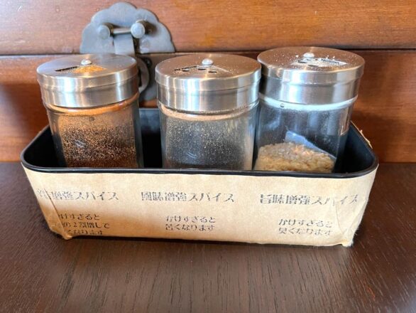 味変用に追加のスパイスも常備。 辛味、風味、旨味を増強するスパイスの三種類。