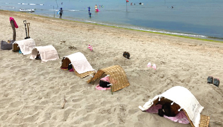 体に溜まった老廃物を外に出す効果があるといわれるサンドセラピー。砂の中に2〜8時間寝そべっているだけでデトックス効果が期待できるのが嬉しい。美浜町ではサンドセラピー体験を開催。日帰りはもちろん、民宿で宿泊しながら体験することもできる。温かい砂に包まれながら、身も心もリフレッシュしてみてはいかがだろう。