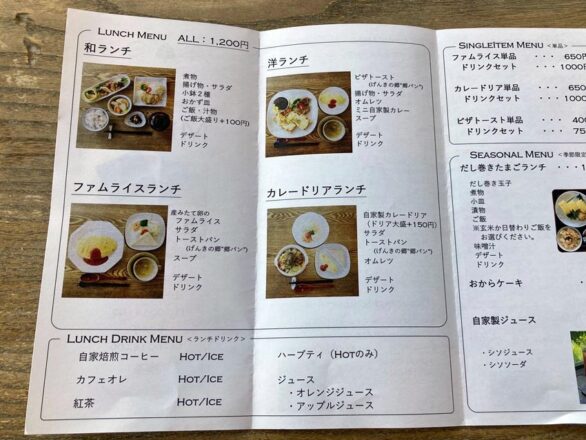 こちらではこだわりの食材と調味料を使った食事と、ファームで生産された商品が購入できます。