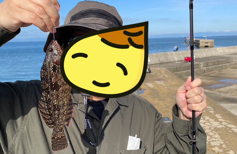 途中あまりに釣れないので足元をてくてく探っていたら20cmオーバーの「クジメ」が釣れました。