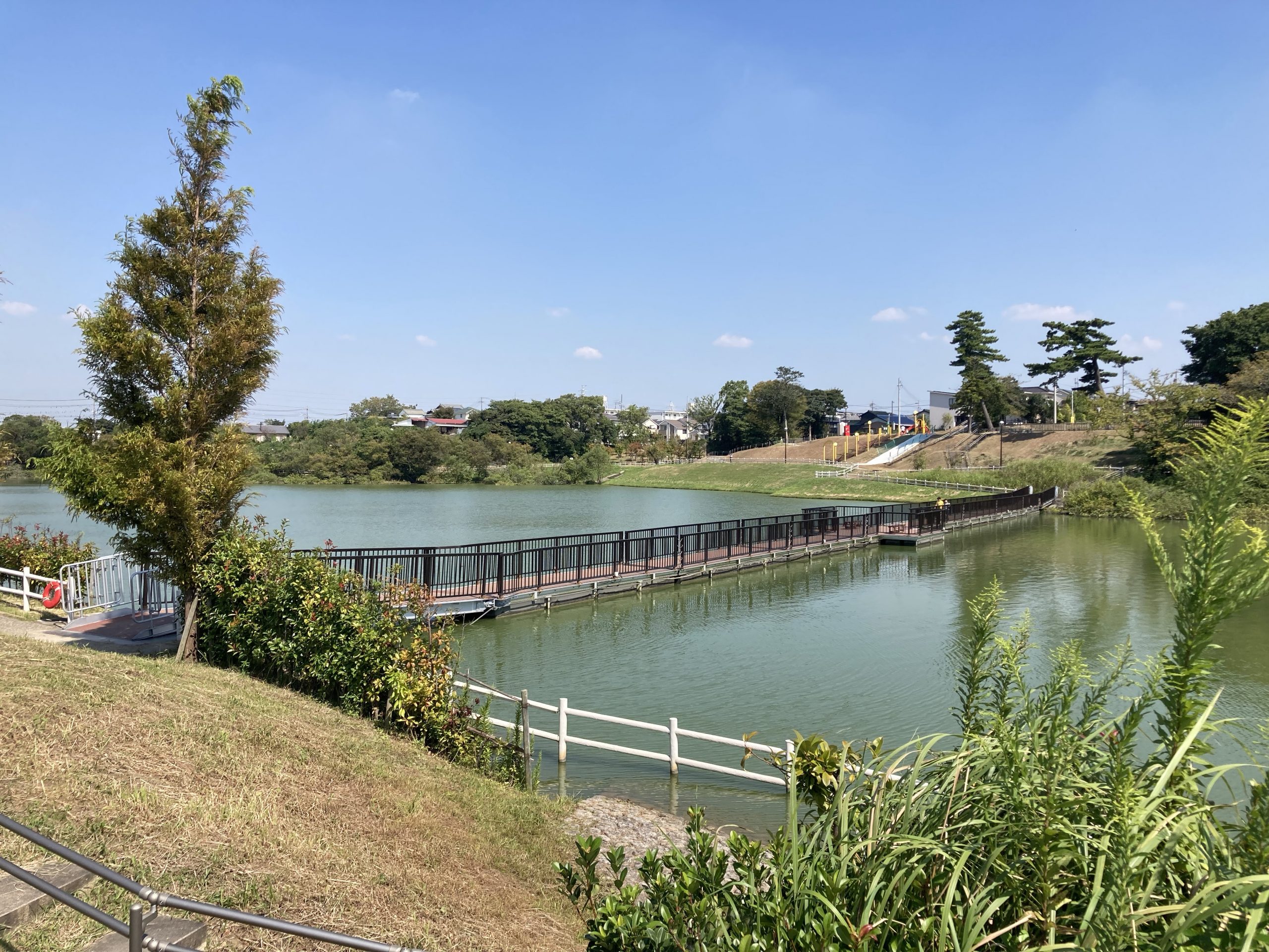 こちらの公園のテーマは「ため池を核とした水辺のオアシス」となっており、大きなため池と緑が豊富で