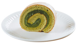 あわただしい時、不安をやわらげるというカモミールブレンドハーブティーには、卵白のみで作るふんわりしっとり生地で抹茶あんを巻いたやさしい味わいのお菓子を合わせて。1本(7カット)690円
