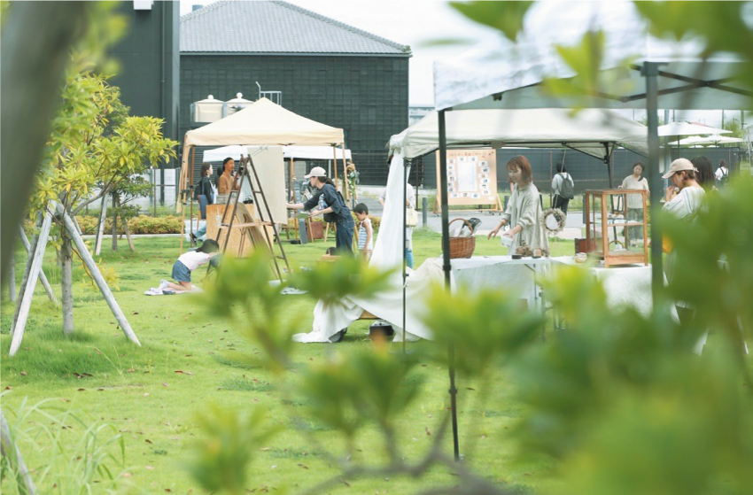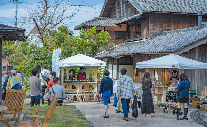亀崎に伊東合資の酒蔵ができたのは約230年前。平成12年に幕を下ろした銘酒「敷嶋」の酒蔵を、令和3年伊東家9代目が復活させました。酒蔵の復活を亀崎の復活につなげたいと伊東さん。「知多半島は農業や漁業が盛んで食が豊かな地域です。半田の米を使った酒造りに愛知県内の酒蔵と挑戦し、亀崎酒蔵祭で提供するなど、知多半島の生産者さんにフォーカスすることで、酒蔵を訪ねる人に日本の食文化を支える農業にも興味を持ってほしいと思っています」。さらに、地域の人と酒蔵をつなげたいと「蔵シカルmarché」を開催。「子どもの頃に敷嶋の蔵で遊んだ、カフェでご飯を食べたという記憶は、酒蔵を身近な存在にします。酒蔵を起点に、亀崎に残されている歴史ある建物を改修し、生活に根差した『営み』を見つけて、なぜこの地域が栄えたのか、ここにある意味は何か、かつて産業で栄えた亀崎だからできることを考えたいですね」。単なる観光地としてではなく、知多半島の文化を支える中心として100年、200年続く土台を築いて後世に残したいと語ります。