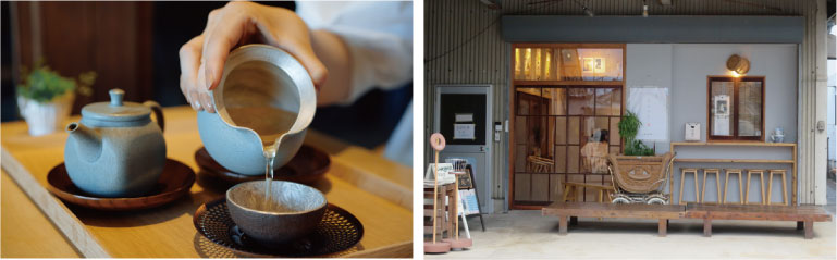 急須職人の父を持ち、自らも作陶家として活躍するオーナー。常滑焼急須で楽しむ日本茶の魅力を伝えたいと工房の一部をリノベーションしてカフェをオープン。茶器、水、茶葉、すべてにこだわった日本茶を体験できます。