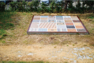 95年前に東窯工業(旧杉江製陶所)の事務所として使われていた「タイル見本室」のモザイクタイル。解体の危機から救われ、現在は閑静な住宅街にある福祉施設「ワークセンターかじま」に展示されています(見学は要問い合わせ)。