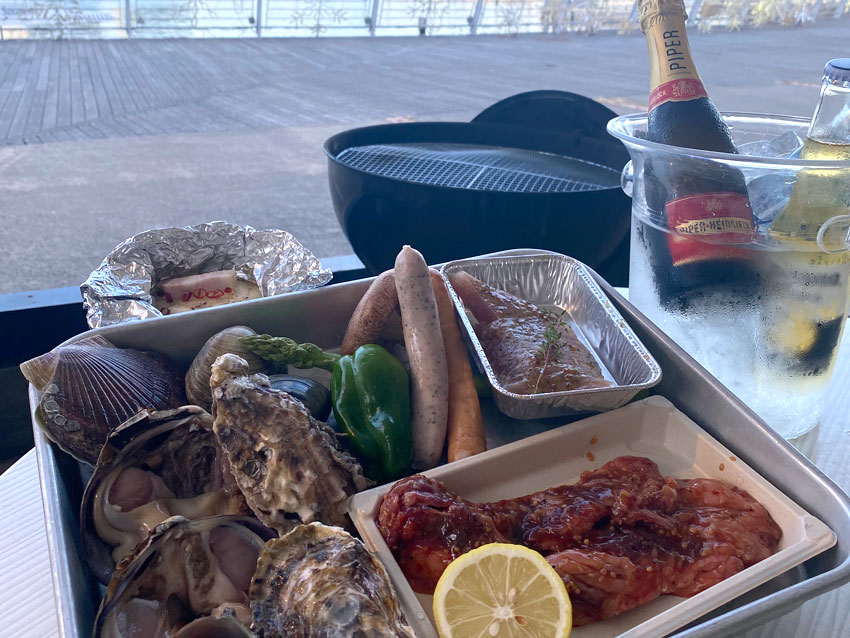 約70種類の食材から選べるのはもちろん、 併設した鮮魚市場で事前に購入した鮮魚を そのまま持ち込みバーベキューで味わえるのも魅力。