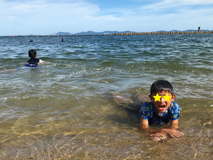 芝生や海添いスペースで身体を動かせるから子ども達も退屈しないよ。