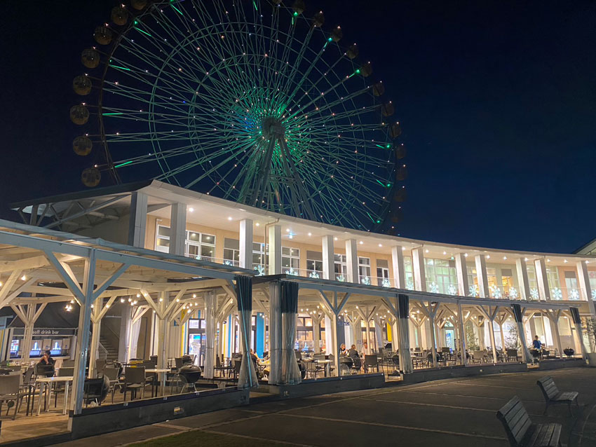 目の前に広がる海景色と観覧車のライトアップを眺めながら、