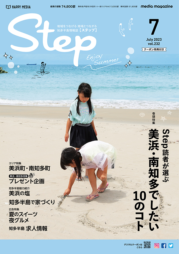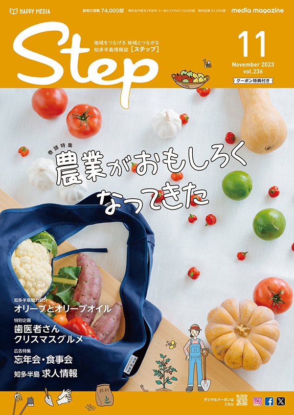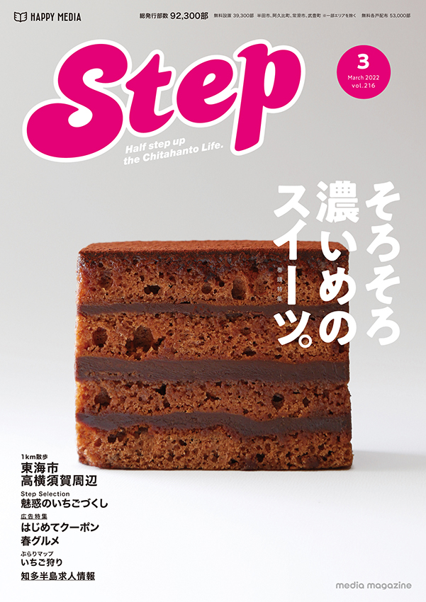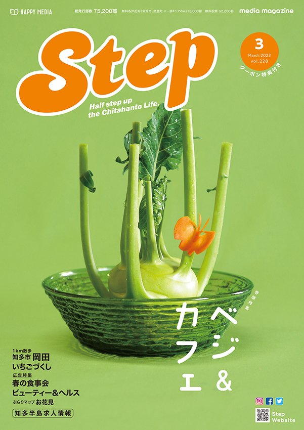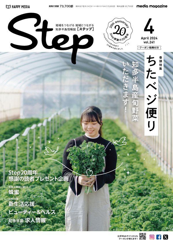 2024年で20周年を迎えた地域情報誌「Step」。愛知県・知多半島を全域に毎月約80,000部を発行。「地域とつながる、地域をつなげる」をテーマに、地域に密着した情報をお届けしています。